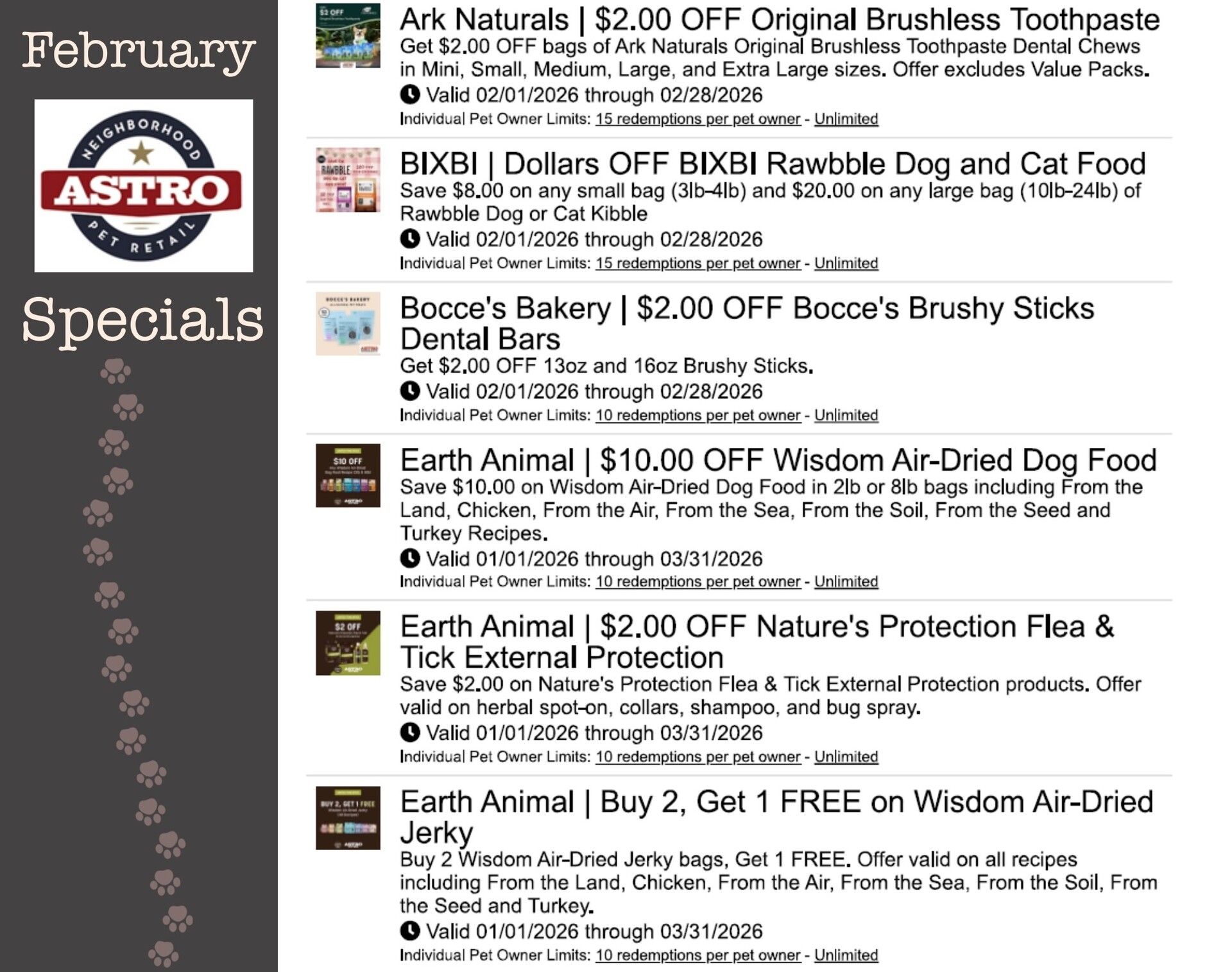 Since February is known as the month of love, we started thinking about how much we love our pets and whether they, and other animals, can love us back. Are animals really capable of feeling love? Many of us would quickly say, “Yes!” But the reality is more complicated and even more interesting. Recently one of our employees went to a lecture about animal emotions. This month she shares what she learned, and why it matters for the animals we care for, plus store news and Astro specials, all below!